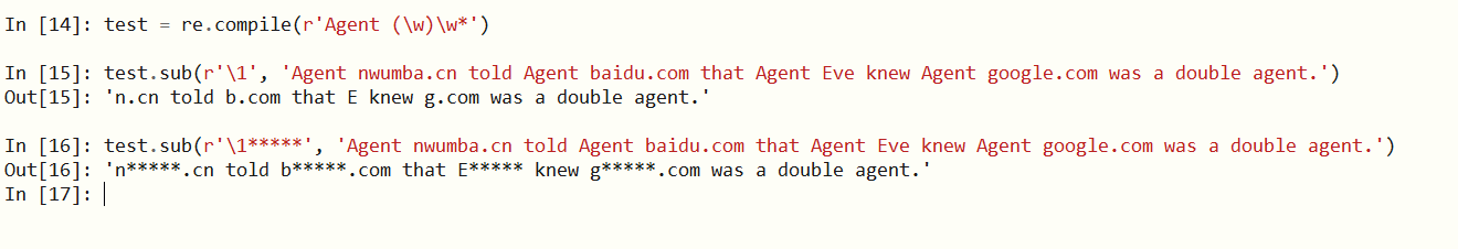 sub(str,re_str): 这个函数用str这个字符串替换re_str匹配到的文本。str中还可以使用\1这种引用匹配文件中的分组,默认只显示匹配到分组的第一个字符。