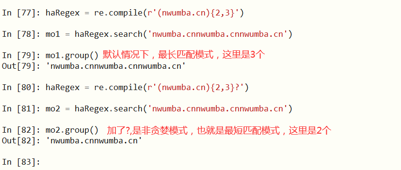 贪婪匹配:这是python正则表达式的默认模式,匹配最长的字符(模式)