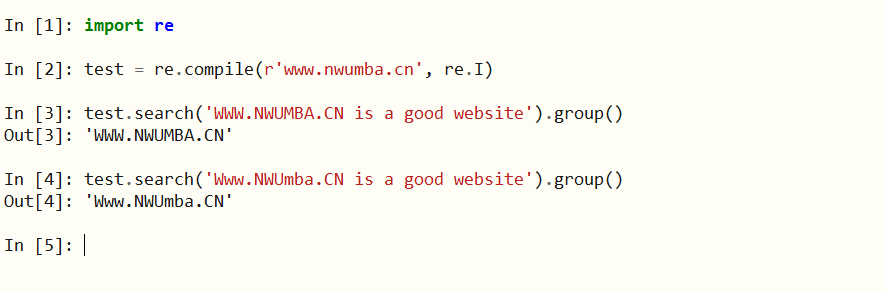 默认情况下,模式以指定的大小写匹配文本,但你可以传递re.IGNORECASE或者re.I来忽略大小写